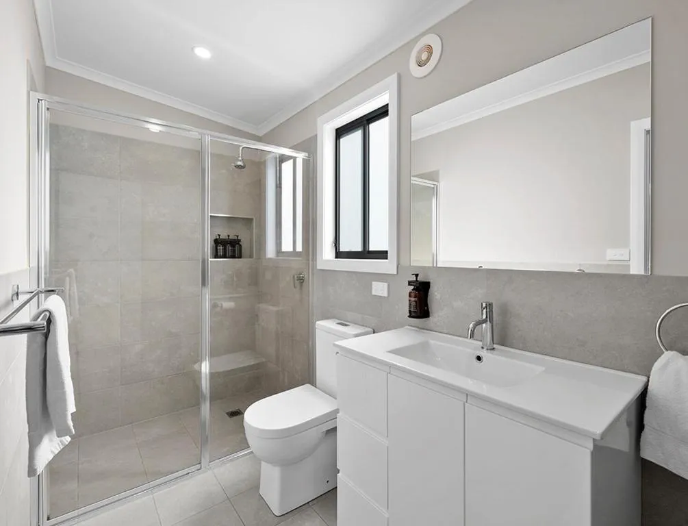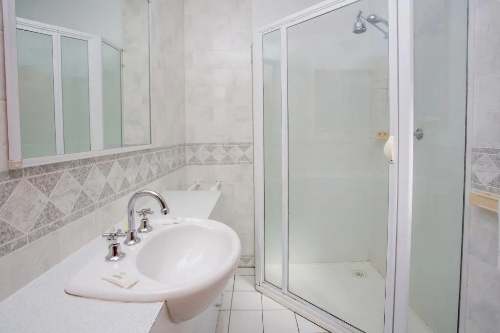 This modern, spacious villa has 2 spacious bedrooms. The master bedroom has a queen-sized bed, while the 2nd bedroom has 2 single-sized beds with fold down bunk beds over each. There is a separate fully equipped kitchen, dining area and a lounge area with a sofa and a plasma TV/DVD player. The bathroom has a large shower and a separate toilet. A split system, reverse cycle air-conditioner is provided and there is a large balcony with an outdoor setting.